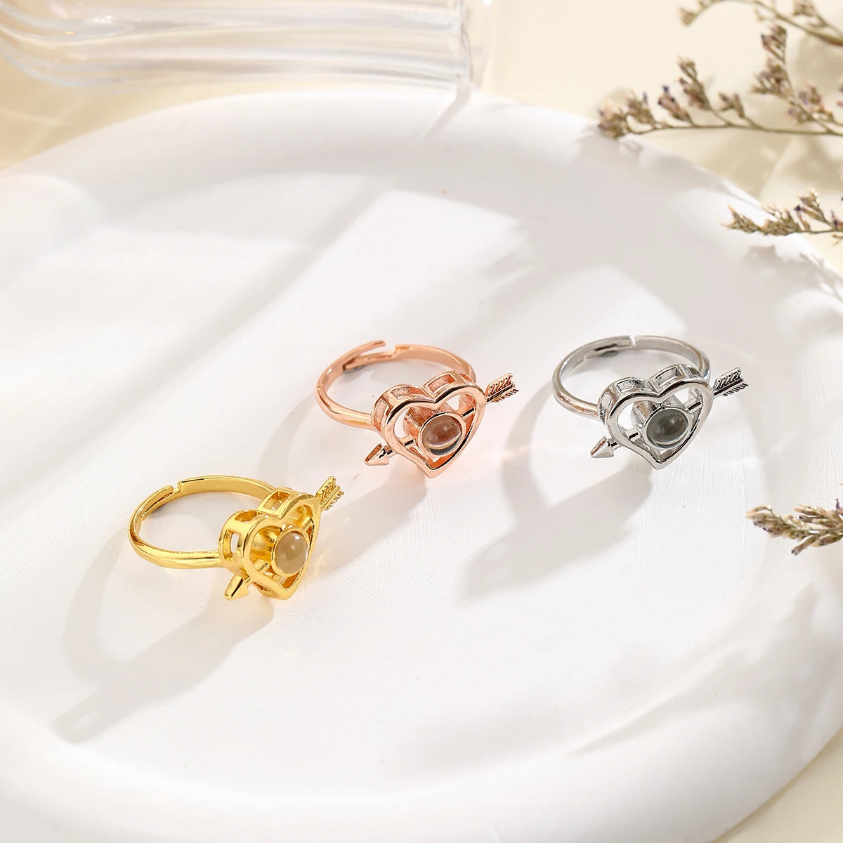 Celebrate love and lasting memories with this personalized photo projection heart ring. Designed for couples or as a heartfelt memorial piece, this elegant ring features a heart-shaped setting that reveals a hidden photo when viewed with light or through a smartphone camera.
