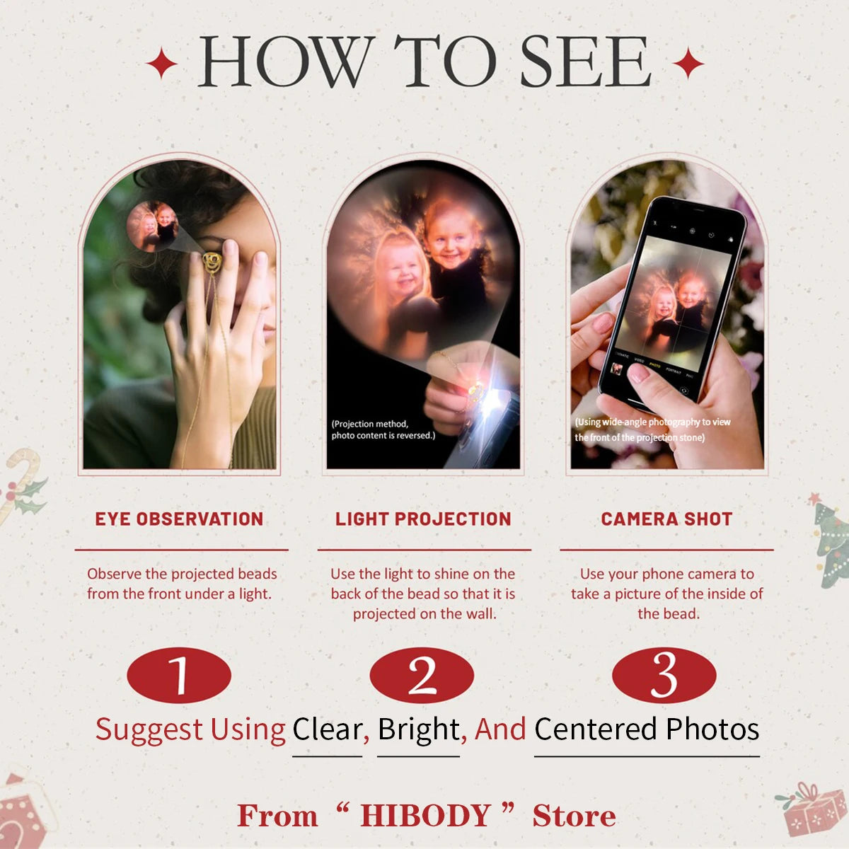 Hidden Photo Projection: Upload a cherished image that appears inside the pendant when viewed through light or a camera lens