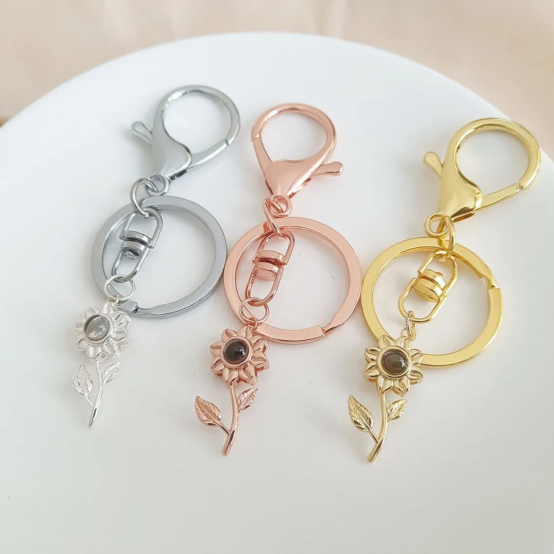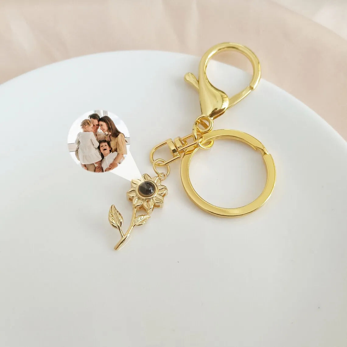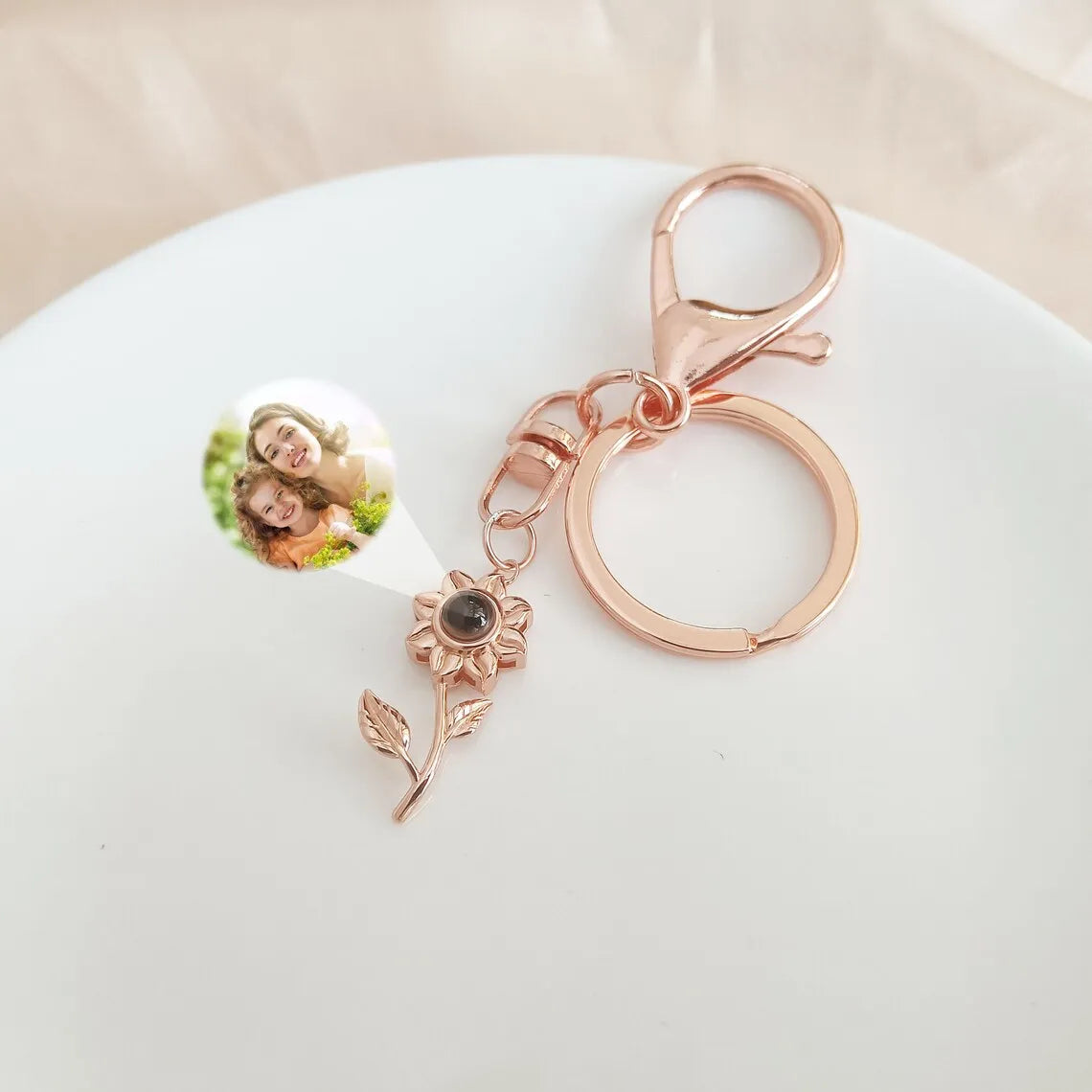Personalized Sunflower Photo Projection Keychain