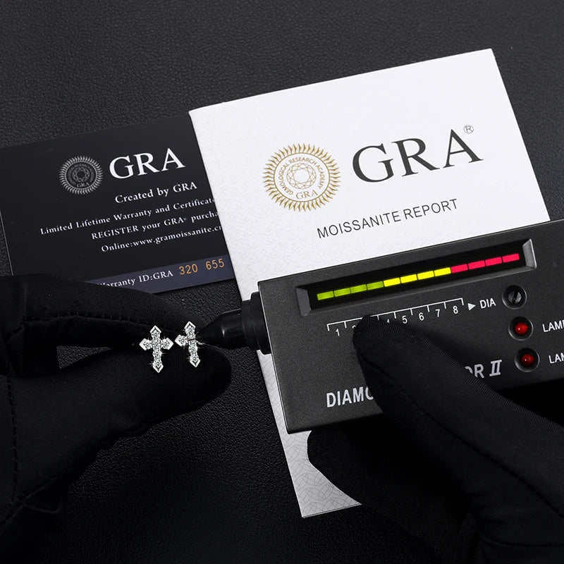 These Moissanite Skeleton Cross Earrings blend timeless faith symbolism with edgy modern design. Crafted from 925 sterling silver, each earring features a dazzling 2.3mm moissanite stone set within a trendy skeleton-patterned cross. Designed as unisex drop earrings, they offer versatile style for any occasion—whether spiritual ceremonies or everyday wear.