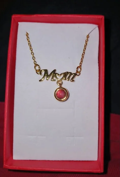 Celebrate love and family with the MOM Personalized Photo Necklace. This heart-shaped pendant features the word "MOM" and holds a hidden custom photo inside the center stone. A meaningful keepsake and thoughtful gift for Mother's Day, birthdays, or any day you want to honor her.