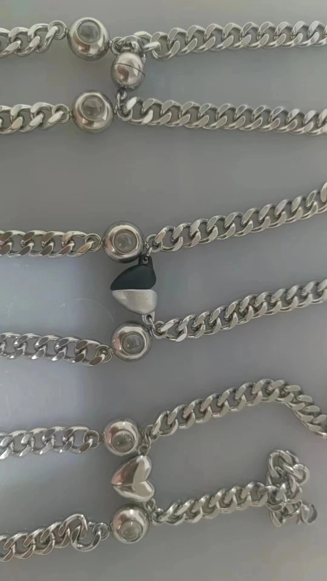 Celebrate your unique connection with this 2-piece Personalized Photo Projection Bracelet Set. Crafted from durable stainless steel with a trendy Cuban chain design and a magnetic peach heart clasp, these bracelets feature custom photo projections for a deeply personal touch. Designed for couples, the set is both stylish and meaningful—perfect for gifting or keeping your loved one close every day.