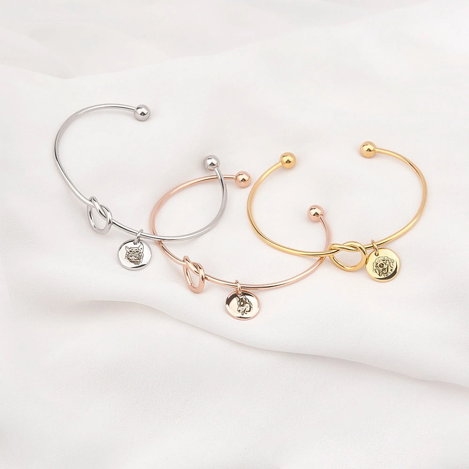 Keep your furry friend close with this Pet Portrait Custom Charm Bracelet, featuring a personalized engraved disc with your dog or cat's portrait. Designed as an open cuff bracelet, it’s a thoughtful and stylish gift for granddaughters, pet lovers, or any woman who shares a deep bond with her pet.