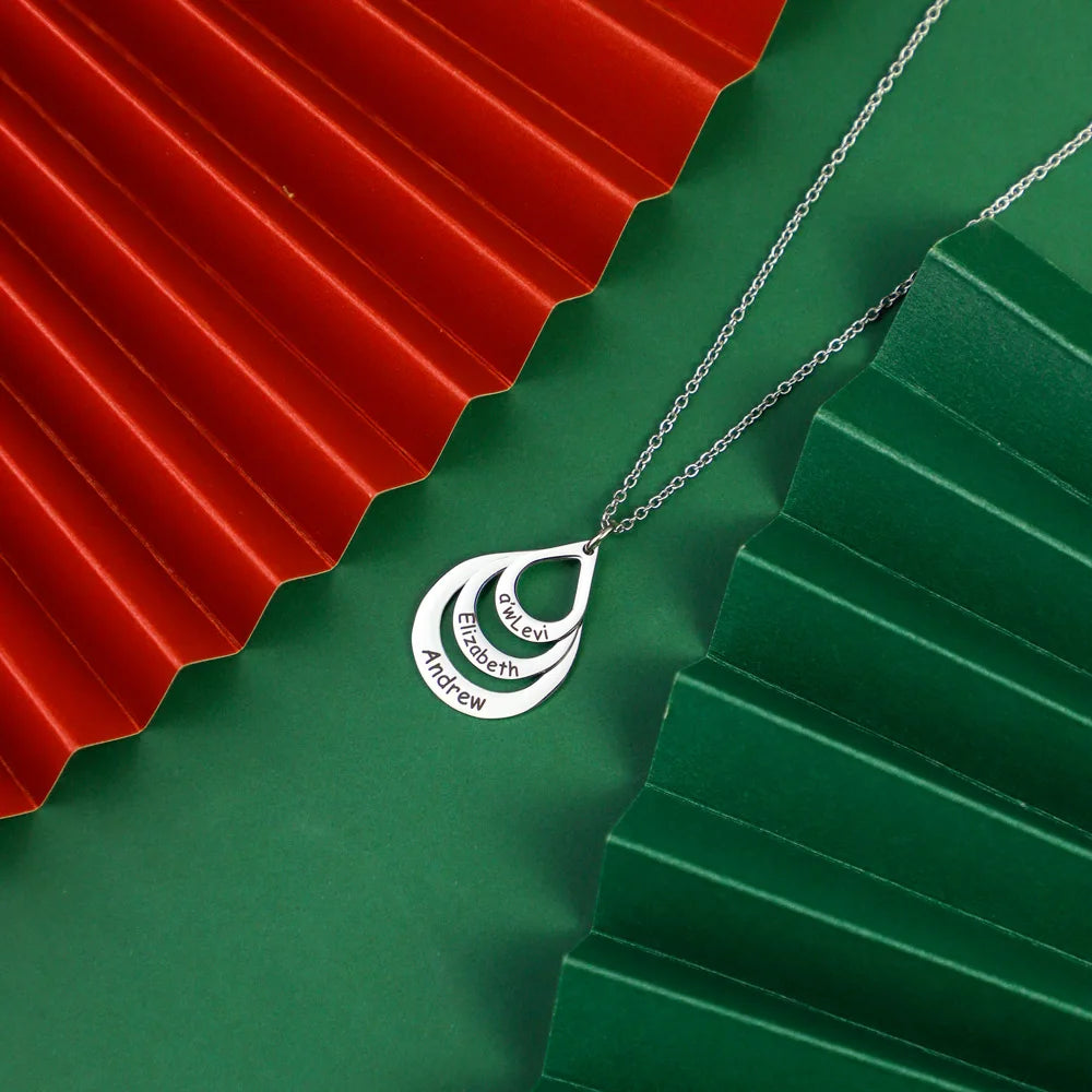 Celebrate the people who matter most with the Water Drop Pendant Necklace, custom engraved with up to four names. This elegant teardrop-shaped pendant is a beautiful way to carry loved ones close to your heart—perfect for family, friends, or couples.